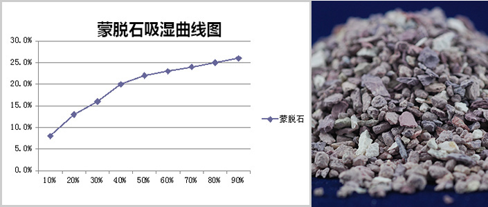 蒙脱石吸湿性能表(25℃ RH10%-90%):
