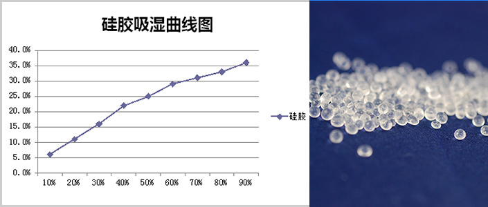 氯化物与凝胶登固化物质进行混合,在25℃,90%湿度条件下,吸湿能力高达280%以上,吸附剂在充分吸湿后变成凝胶状或块状,不反渗。