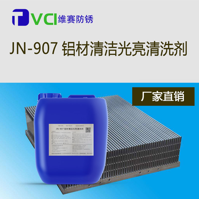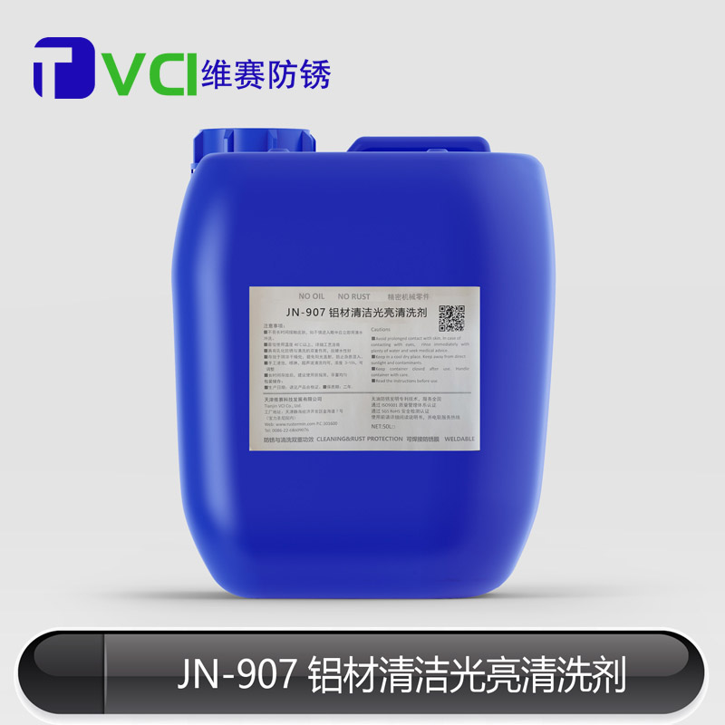JN-907高效多功能水基清洗剂 铝材清洁光亮剂是由表面活性剂、渗透剂、乳化剂和助剂组成的高效多功能水基清洗剂,适用于钢铁、铝材等零部件的脱脂除油,对矿物油、动植物油脂等清洗均有特效。本品不含强酸、强碱、铅、汞、镉等重金属及有毒有害物质,是一种安全经济的水基清洗剂。本品特别适用于超声波清洗,对铝材清洗有特效。