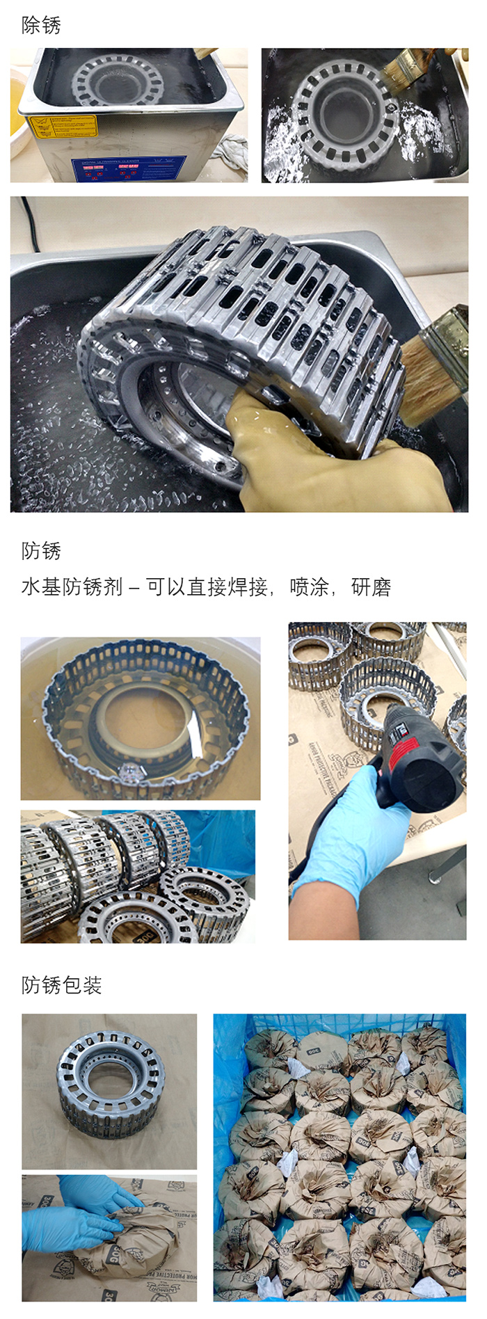 i) 将除锈合格的工件,取出,后,放入VCI水基防锈剂容器中,没过液面;